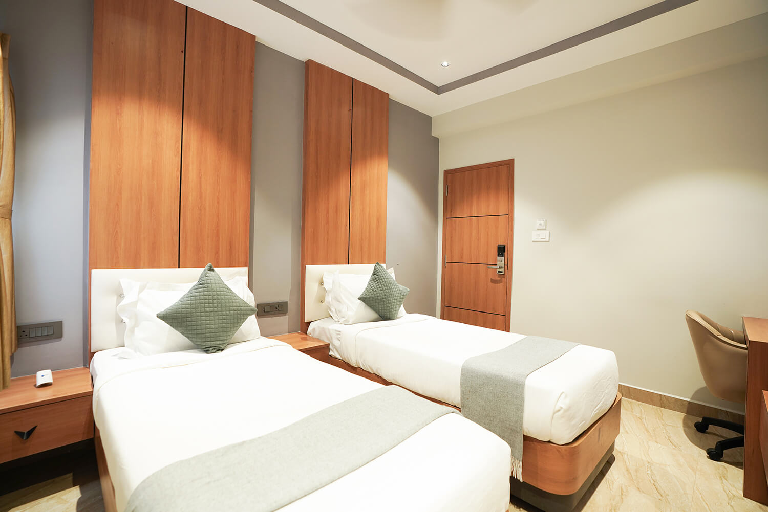 Ideal for colleagues, friends, or small groups, the Twin Executive Room offers two comfortable single beds, modern interiors, and a smartly designed layout. Perfect for business and leisure travelers, the room features contemporary amenities and functional comfort, ensuring a relaxing stay with easy access to Hyderabad’s IT hubs, corporate centers, and entertainment districts.